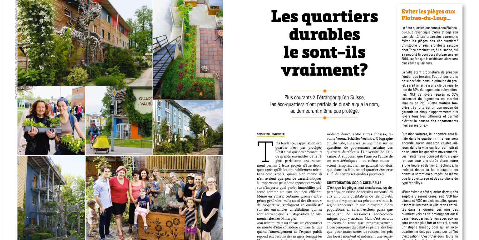Les gestes et comportements des utilisateurs ont un impact important sur le bilan des éco-quartiers. Certains bâtiments Minergie munis d’aération naturelle (ventilation contrôlée) sont par exemple déréglés parce que les habitants qui avaient froid les ont bouchées. Verena Schäffer-Veenstra géographe et urbaniste.