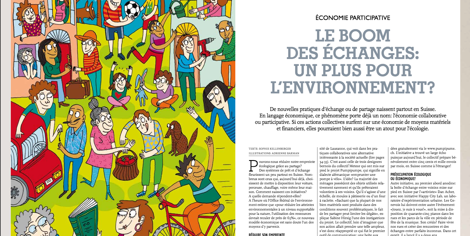 De nouvelles pratiques d’échange ou de partage naissent partout en Suisse. En langage économique, ce phénomène porte déjà un nom: l’économie collaborative ou participative. Si ces actions collectives surfent sur une économie de moyens matériels et financiers, elles pourraient bien aussi être un atout pour l’écologie.