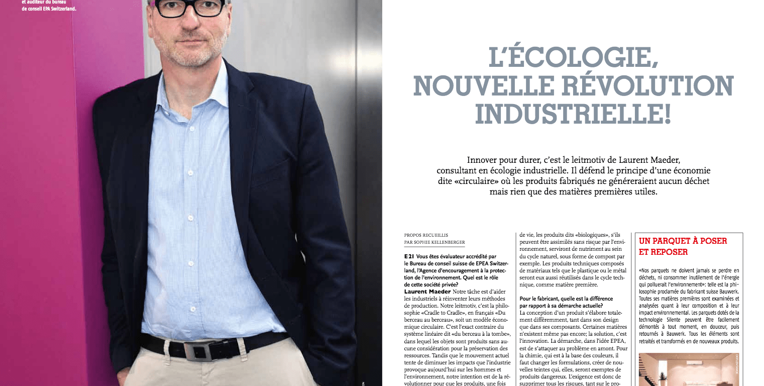 Notre tâche est d’aider les industriels à réinventer leurs méthodes de production. Notre leitmotiv c’est la philosophie « cradle-to-cradle », en français du « berceau au berceau », soit un modèles économique circulaire. C’est l’exact contraire du système linéaire dit du « berceau à la tombe ». Laurent Maeder, consultant en écologie industrielle.